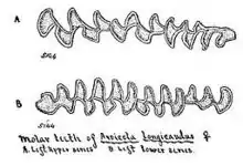 The genitalia of the long-tailed vole have been described. The baculum has broad and straight proximal bone. It is similar in structure to that of the meadow vole, but with different proportions. The basal shaft is dumb-bell shaped in cross section and tapers to a blunt point at the end. The shaft is broad in dimension and connects via cartilaginous linkages to three lateral segments. The glans penis has a dorsal lobe elevated above a ventral rim. The rim has spiny fingerlike processes, but not the dorsal lobe.[10] A rod shaped os clitoridis may be present, in front of the urethra.[11]