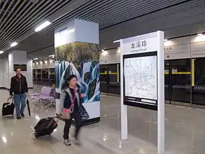 Longxi Road (simplified Chinese: 龙溪路; traditional Chinese: 龍溪路; pinyin: Longxi Lù) is a station on Line 10 of the Shanghai Metro. The station began operation on April 10, 2010. It is the last station westbound before Line 10 splits into two branches.[1]