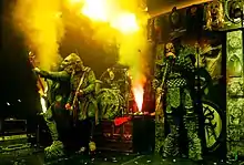 Lordi is a Finnish hard rock/heavy metal band formed in 1992 by the band's lead singer, songwriter and costume-designer, Mr Lordi.[1] The band is known for wearing monster masks and using pyrotechnics during concerts. They rose to domestic success in 2002 with their first single, "Would You Love a Monsterman?". The band's eleventh through their seventeenth studio albums were released as part of the box set Lordiversity.