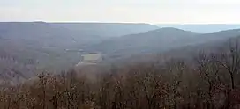 Upper Lost Cove from Sewanee, Tennessee. The Saddle is in the distance above Lost Cove Cave