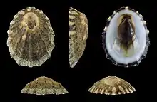 Lottia digitalis, commonly known as the fingered limpet or ribbed limpet, is a species of sea snail, a true limpet, a marine gastropod mollusk in the family Lottiidae.[2] These limpets are usually found on the surface of rocks in the high intertidal region[3] on the coastal fringes of the north-eastern Pacific Ocean.[4]