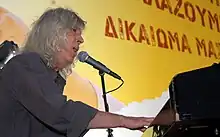 ![]() Loukianos Kilaidonis sings at a Syriza festival in Kotzia Square in Athens | |