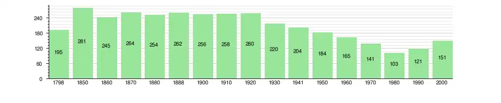 As of 2000, there were 58 private households in the municipality, and an average of 2.6 persons per household.[9] There were 17 households that consist of only one person and 6 households with five or more people. Out of a total of 59 households that answered this question, 28.8% were households made up of just one person and there was 1 adult who lived with their parents. Of the rest of the households, there are 12 married couples without children, 22 married couples with children There were 5 single parents with a child or children. There was 1 household that was made up of unrelated people and 1 household that was made up of some sort of institution or another collective housing.[10]