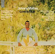 Love Is Blue is an album by American pop singer Johnny Mathis that was released on March 6, 1968,[1] by Columbia Records and adhered even more strictly to the concept of the "cover" album of recent hits than its predecessor in that five of the 10 songs selected for the project ("I Say a Little Prayer", "By the Time I Get to Phoenix", "The Look of Love", "Never My Love", and the title track) were chart hits for the original artists within the previous year and another three ("Moon River", "Walk On By", and "Venus") had charted within the previous decade. Even the two remaining selections that did not bring chart success to the original artists were by the hit songwriting teams of Burt Bacharach and Hal David ("Don't Go Breakin' My Heart") and John Lennon and Paul McCartney ("Here, There and Everywhere") and left no room for the usual inclusion of some original songs or material from Broadway.