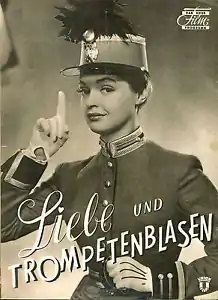 Love and Trumpets (German: Liebe und Trompetenblasen) is a 1954 West German musical comedy film directed by Helmut Weiss and starring Hans Holt, Nadja Tiller and Marianne Koch.[1] It was shot at the Bavaria Studios in Munich and on location around Sirmione on Lake Garda in Italy. The film's sets were designed by the art director Ludwig Reiber.