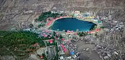 Lower Kachura Lake, also known as Shangrila Lake, is a lake located near the city of Skardu in Gilgit−Baltistan, Pakistan. Situated at a height of 2,500 metres (8,200 ft), it has had an operational resort on its bank since 1983.[1]