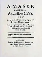The title page of John Milton's Comus, first performed at the castle in 1634