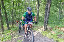 Not to be outdone by the first two rain soaked races in the National Ultra Endurance (NUE) series, stop number three at the Lumberjack 100 in Michigan saw 11 inches of rain and 80 mph winds the night before the race in the worst storm the area had seen in 30 years. The winds and rain forced a marathon clean-up of debris and trees from the trails, but by the time Saturday morning broke all that was left were a few welcome log hops and three muddy sections that grew as the 250 racers passed through them. Fortunately due to the nature of the mostly sandy course, the majority of the trail was well drained and the amount of standing water was limited to only those three short, but treacherous sections. Undeterred by the conditions, Jeff Schalk (Trek/VW) maintained his control over the series lead with another close win by only a minute over Oregonian, Evan Plews (Scott/ Capitol Subaru).[12] So far each of Schalk's three wins in the series have been by two minutes or less after 100 miles of racing. A group of eight racers made the early separation through most of the first 25-mile lap, but an attack from Harlan Price (IFRacing.org/ Industry Nine) on the first eight-mile section of the second lap whittled the group down to five racers; Schalk, Plews, Chris Eatough (Trek/VW), Christian Tanguy (American Cycle and Fitness) and Price. Price repeated the same attack on lap three and thinned the group down to himself, Schalk and Plews, but his early efforts took their toll towards the end of the lap and Plews and Schalk moved up the road without the Independent Fabrication rider. Schalk led most of the fourth lap and found all of his attacks answered by a tenacious Plews, who was still contending despite a flat early in lap two. It wasn't until about five miles to go that Schalk was able to get a gap and hold it to the finish despite some cramping. Filling the last two positions in the top five were Eatough in fourth and Tanguy in fifth. In the women's field Cheryl Sornson (Trek/VW) took home her first win of the NUE series with a full day riding in front of the rest of her competitors. Sornson was off the front from the beginning using her improved 2008 form to stay away on course that favored a rider capable of staying on the gas and riding smart lines through the narrow and curvaceous singletrack. Her win put her in the overall lead for the series. Seventeen minutes back from the Trek/VW rider was Karen Potter (MTB-Mind.com) from Massachusetts and rolling across the line in third was last year's winner and local Daniel Musto of the Kenda-Titus-Hayes team. The singlespeed division saw a new face on the top of the podium. Ronald Sanborn (McLain Cycle and Fitness) found himself in the fortunate position of first by only a minute over second place John (Fuzzy) Myline (Sho-Air, rock and Road/ Niner) with a time of 7:57:19. Third position was occupied by Nate Versluis (Founders Ale / Alger Racing) and not far behind was the series singlespeed leader Dejay Birtch (Niner Bikes).
