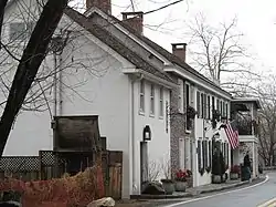 The Black Bass Hotel was built in the early 1740s. It had many names over the years including Wall's Tavern, The Lumberville Hotel, Temple Bar, and The Rising Sun. It fell into decline in the late 19th century, until it was purchased in 1949 by Herbert (Herbie) Ward. He revived the business and ran it until his death 54 years later.[3] The property was purchased by Jack Thompson, owner of the Thompson auto dealerships in Doylestown, in 2008 and underwent a major refurbishment in 2009. Thompson died in December 2020. His family continues to operate the inn and restaurant.[4]