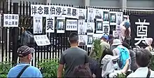The Hong Kong Liaison Office expressed its "deep condolences" and urged the Hong Kong people to "denounce violence and protect the rule of law and stability of society together."[12][6] They reiterated their support for the Hong Kong government and police force, urging them to punish the culprits sternly in accordance to the law.[6] The office characterised the attack as "an atrocity against humanity that was totally inhumane and unforgivable."[6][18] In a commentary in the Chinese state-owned news agency Xinhua, this fatal incident was cited as one of the examples highlighting the violence perpetrated by "black-clad rioters" besetting Hong Kong's society.[48]