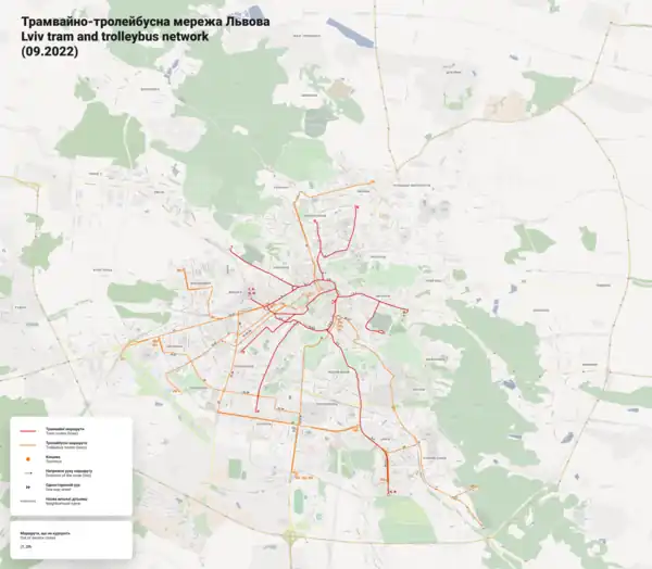 {{cite web}}: CS1 maint: multiple names: authors list (link) - ↑ "З 1 липня 2019 року змінюється нумерація маршрутів міських тролейбусів — Львівська міська рада". city-adm.lviv.ua (in Ukrainian). 2019-06-11. Retrieved 2022-08-30.