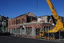 Original Lyttelton Harbour Board offices with earthquake damage; the top story has since been rebuilt to a modern design