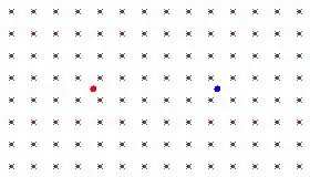 Two points z1 and z2 are conjugate with respect to a generalized circle C, if, given a generalized circle D passing through z1 and z2 and cutting C in two points a and b, (z1, z2; a, b) are in harmonic cross-ratio (i.e. their cross ratio is −1). This property does not depend on the choice of the circle D. This property is also sometimes referred to as being symmetric with respect to a line or circle.[3][4]