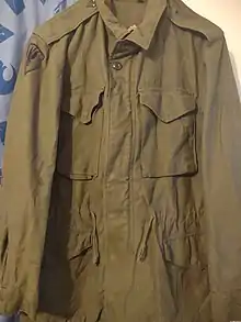 The M-1951 field jacket was a U.S. Army four pocket jacket made of 9-ounce wind resistant, water repellent treated cotton sateen cloth in Olive Green Shade 107 (OG 107).[1] It was redesignated as the M-1951 field coat in November 1956.