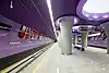 Line M2 is the second line of the Warsaw Metro. It is currently 18.9 kilometres (11.7 mi) long, has 18 stations and runs from Bródno neighborhood in Targówek district to the Ulrychów district in Wola. The planned line completion is in 2026, and will run from Targówek to Bemowo and number 21 stations.[1]