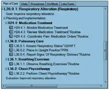 The Nursing Plan of Care (POC) was developed by Medicomp Systems, for the Clinical Care Classification (CCC) System.[18] The CCC System is a standardized, coded nursing terminology that provides a unique framework and coding structure for accessing, classifying and documenting patient care by nurses and other allied health professionals.[20] The CCC is directly linked in the MEDCIN nursing POC to medical terminology with the purpose of creating patient plan of care by extracting a pool of documentation from the EHR history.[18] The CCC nursing terminology is integrated into the MEDCIN clinical database through a contextual hierarchical tree, providing an array of terminology standards and concepts with Intelligent Prompting capabilities of the MEDCIN engine.[21]