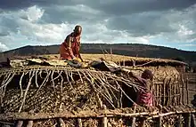 Maasai clothing symbolises ethnic group membership, a pastoralist lifestyle, as well as an individual's social position.[97] From this they can decide the roles they undertake for the tribe. Jewellery also can show an individual's gender, relationship status, and age.[97] Maasai traditional clothing is both a means of tribal identification and symbolism: young men, for example, wear black for several months following their circumcision.