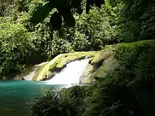 Cagnituan Lagoon, the water coming out of Guinsohotan Cave flows down in cascades to form a natural lagoon frequently visited by bathers and patrons of cool therapeutic treatment.