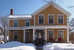 The MacDonald–Todd House is an 1857 home in Hastings in the U.S. state of Minnesota. The Greek Revival-style house was built by A.W. MacDonald in the utopian town of Nininger when he relocated to Dakota County from New York. He came to become the managing editor of the Emigrant Aid Journal. The paper was owned by Lieutenant Governor Ignatius Donnelly, who also founded the community of Nininger. In 1866, the home was moved across the ice in the Mississippi River to its present location, by Irving Todd, who had bought it for $385.[2][3]