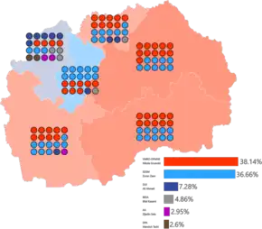 Of the 123 seats in the Assembly of the Republic, 120 are elected from six 20-seat constituencies in Macedonia using closed list proportional representation, with seats allocated using the d'Hondt method. The remaining three members are elected by Macedonians living abroad.[4][5] However, the overseas seats would only be validated if the candidates received enough votes. As they did not, the seats were not awarded.