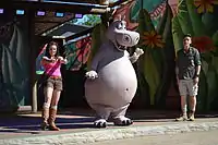 Madagascar Live! It's Circus Time is a 30-minute live show,[62] based on the film Madagascar 3: Europe's Most Wanted. The story follows the characters of Madagascar to a circus, where they try to avoid being captured by the animal control officer Captain Dubois by blending among its artists, performing stunts, singing and dancing.[63] The show opened in 2012, in Everland Resort, in South Korea,[64][65][66] and in 2013 in Heide Park, Germany,[62] and in Gardaland, Italy.[63]