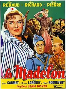 Madelon (French: La Madelon) is a 1955 French comedy film directed by Jean Boyer and starring Line Renaud, Jean Richard and Roger Pierre.[1] It is inspired by the popular song of the First World War "La Madelon" about Madelon, a waitress working in a country inn encountered by a group of soldiers.