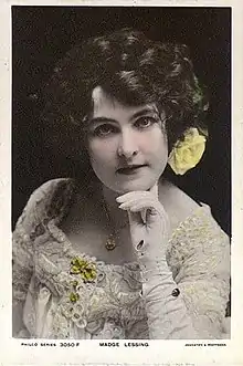 Madge Lessing (27 November 1873 – 14 August 1966) was a British stage actress and singer, panto principal boy and postcard beauty of Edwardian musical comedy who had a successful career in the West End in London, Europe and on Broadway from 1890 to 1921 and who made a number of early film appearances in Germany for director Max Mack.