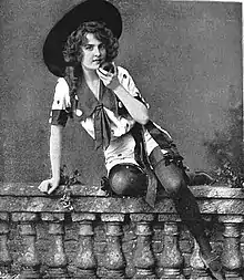 In 1899 she played in A Dangerous Maid for 64 performances at the Casino Theatre in New York,[8] while in Boston at Christmas 1899 she appeared as 'Little Boy Blue' in 12 performances of the children's pantomime Little Red Riding Hood which in early January 1900 moved on to the Casino Theatre in New York, the home of the Broadway adult musical, where the production was transformed with additional female actresses added to the cast in scanty costumes and more risqué songs to cater for an adult audience.[9] Next Lessing succeeded Mabelle Gilman as 'Priscilla' in the vaudeville The Rounders (1900) at the Columbia Theatre in Boston.[7]