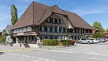 Starting in the 19th century, the farms in the village switched from growing grain to livestock and dairy farming. A dairyman's cooperative and three cheese factories opened. In 1869, the Ammann Mühlebau-Werkstätte opened in Madiswil. This was the first factory of what became the Ammann company, which is now a large multinational with 2,900 employees that builds construction equipment. The company is now headquartered in nearby Langenthal.[5] In 1889, the Langenthal-Huttwil-Wolhusen railway built a station in Madiswil, which made it easy for commuters to work in nearby Langenthal. In the 1960s several new housing estates were built on the outskirts of the village. At the beginning of the 21st century the main village has become a commercial and industrial center for the surrounding rural hamlets.[4]