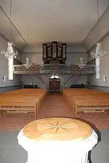 The village church of St. Blasius was first mentioned in 1275, though it was built above several older churches. The oldest is from the 8th century and may have been built on wooden piles driven into the ground. The current church was built in 1779.[4]