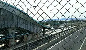 Megara railway station (Greek: Σιδηροδρομικός σταθμός Μαγούλας, romanized: Sidirodromikós Stathmós Megáron) is a station in the municipal unit of Magoula of the municipality of Elefsina, West Attica, Greece. It is located adjacent to A8 motorway between Athens and Patras. It was opened on 18 July 2006 as part of the extension of the Athens Airport–Patras railway to Corinth[3] It has two side platforms and a siding.[4] The station is served by the Athens Suburban Railway between Piraeus and Kiato.[5] The station has a similar design to Ano Liosia railway station. The station serves the adjacent Thriasio hospital.
