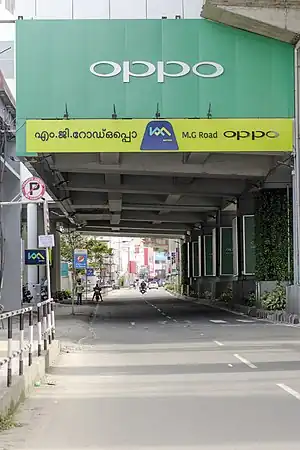 Mahatma Gandhi Road,[1] popularly known as M. G. Road, is the main artery as well as the commercial high street of the city of Kochi, in the state of Kerala, India. The road lies north-south with its boundaries at the Venduruthy bridge, Thevara in the south, and the Madhava Pharmacy Junction in the north, where it intersects the Banerji Road. The road was earlier part of the NH 47A (Old Highway) and was later handed over to Kochi Municipal Corporation. The highway was earlier known as Seventy Feet road. The total distance of the road is 4.5 kilometres (2.8 mi).