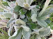 Mairia robusta is a tufted, white-woolly, perennial, herbaceous plant of up to 30 cm (1 ft) high, that is assigned to the family Asteraceae. It has large, robust, hard and leathery leaves, with a white woolly hairy, nontransparent underside, while the felty hairs on the top are lost with age. Only at a few occasions, flowers have been observed, in June, October and December, always after a fire. The flower heads sit individually at the tip of white-woolly scapes, with 14–16 purplish pink to white ray florets surrounding a yellow disc. M. robusta is an endemic species that is restricted to rocky mountain slopes in the Western Cape province of South Africa.[1]