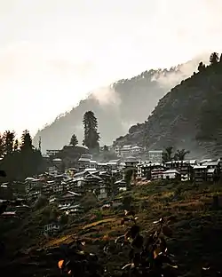 Malana is an ancient Indian village in the state of Himachal Pradesh. The only village in the Malana Nala, a side valley of the Parvati Valley northeast of the Kullu Valley, it is isolated from the rest of the world. The peaks of Chanderkhani and Deo Tibba shadow the village. It is situated on a remote plateau by the torrential Malana river, at a height of 2,652 metres (8,701 ft) above sea level. Malana has its own lifestyle and social structure, and people are strict in following their customs. Malana has been the subject of various documentaries, including Malana: Globalization of a Himalayan Village.[2] and Malana, A Lost Identity.[3] The existing speakers of the autochthonous language Kanashi, the traditional language of the inhabitants of Malana, number approximately 1700. According to the 1961 census, the language speakers were then 563, but today the population of Malana is at least three times as large as 40 years ago.[4] The most common route to the village is by taxi or bus from Jhari. Roads to Malana Village trekking gate are developed.