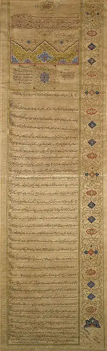 As queen mother, she exerted considerable political influence during the reign of her son from 1848 until her death in 1873.[3] She is described as a strong personality and politically gifted.[3] Strongly rooted in family and clan networks, she tended to favour and support the Qajar nobility rather than merited commoners, mostly because members of the Qajar family and clan had much better access to her as compared to outsiders.[3]
