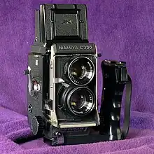 The Mamiya C330 Professional is a traditional film twin-lens reflex camera introduced in the 1970s for the professional and advanced amateur photography markets. This model was 340 grams lighter than the previous model C33, which weighed 2040 grams (with 80 mm lens). The later C330f is an improvement on the C330 and was succeeded by the C330S with further improvements.