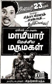 - 1 2 3 4 Guy, Randor (8 November 2014). "Maamiyaar Mecchina Marumagal (1959)". The Hindu. Archived from the original on 3 December 2014. Retrieved 31 August 2019.