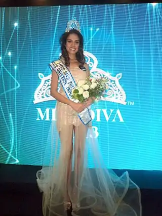 Manasi Moghe (born 29 August 1991) is an Indian beauty pageant titleholder who was crowned Miss Diva Universe 2013[2] and represented India at Miss Universe 2013 in Moscow, Russia on 9 November 2013.[3] A big favourite, and made it to the top 10.