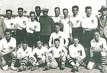 Football was introduced to Palestine by the British military during its occupation of the territory in World War I. After the war, the sport's development was continued by "European Jews who had been exposed to soccer in their native countries".[1] The Palestine Football Association was founded in August 1928 and applied for membership in FIFA. It was accepted to FIFA on 6 June 1929 as the Palestine Football Association, following an application by the Jewish Maccabi World Union.[3][4] It was the first of 14 sports organisations which absorbed hundreds of leading sportsmen who immigrated in the wake of antisemitism in Europe.[5]