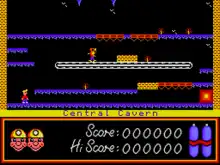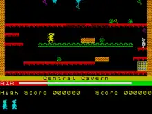 Manic Miner is a platform game written for the ZX Spectrum by Matthew Smith. It was published by Bug-Byte in 1983, then later the same year by Software Projects.[4] The first game in the Miner Willy series, the design was inspired by Miner 2049er (1982) for the Atari 8-bit family.[5][6] Retro Gamer called Manic Miner one of the most influential platform games of all time,[7] and it has been ported to numerous home computers, video game consoles, and mobile phones.