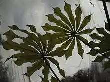 Species of Manihot are monoecious[6] trees, shrubs and a few herbs that are native to the Americas, from Arizona in the United States south to Argentina and Uruguay.[4] The best known member of this genus is the widely cultivated cassava (Manihot esculenta).[7]
