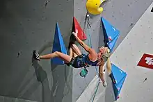 Outside of competition climbing, she has redpointed 8c (5.14b) graded sport climbing routes in places such as Buoux or Céüse in France,[2] or Margalef in Spain.[3]