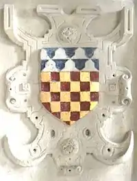 - Sir Robert Chichester (1578–1627) (son). His monument with kneeling effigies of himself and his two wives exists in Pilton Church. He married firstly Frances Harrington (died 1615), who received a stately funeral in Pilton church attended by many eminent persons.[20] She was the daughter of John Harington, 1st Baron Harington of Exton (1539–1613) and a co-heiress of her brother John Harington, 2nd Baron Harington of Exton (1592–1614). By her he had a daughter Anne Chichester who married Thomas Bruce, 1st Earl of Elgin (1599–1663). Secondly he married Ursula Hill, daughter of Robert Hill of Shilston.