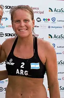 María Virginia Zonta (born 30 September 1989, Santa Fe) is an Argentine beach volleyball player.[1] In 2012, she played with Ana Gallay. They participated in the 2012 Summer Olympics tournament and lost their three pool matches.[2]