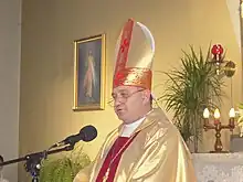 On 30 March 1983, during the Extraordinary Synod of the Polish Old Catholic Church, he was elected an auxiliary bishop of the Pomeranian diocese.[3] The date of the episcopal consecration ceremony was shifted many times in fear of being arrested and harassed by the communist security apparatus. Eventually, the ceremony took place on 29 June 1983 in Warsaw. The consecrator was the then head of the Old Catholic Church in the Polish People's Republic, archbishop Piotr Filipowicz, while bishops Jan Kazimierz Banach and Andrzej Rokita served as co-consecrators.[4]