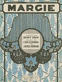 "Margie", also known as "My Little Margie", is a 1920 popular song composed in collaboration by vaudeville performer and pianist Con Conrad and ragtime pianist J. Russel Robinson, a member of the Original Dixieland Jazz Band. Lyrics were written by Benny Davis, a vaudeville performer and songwriter. The song was introduced by the Original Dixieland Jazz Band in 1920 as Victor 78, 18717-A, in a medley paired with "Singin' the Blues". The B side was "Palesteena".[1] The ODJB recorded their instrumental version on December 1, 1920.[2][3]