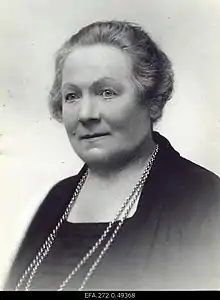 During the first German occupation in 1918, she was imprisoned. Later, she was a member of the Estonian Red Cross General Government and the head of the fundraising department, one of the founders and chairman of the Young Women Christian Association, the founders and chairwoman of the Women's Home Guard 1927–1936, and one of the founders of the Housewives Movement.[2][3]