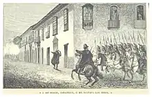 On January 15, 1871, the Commander-in-Chief of the Army at the time, General Agustín Morales, along with the support of the people of La Paz, tired of the president's despotic actions for almost seven years, rose up against Melgarejo and deposed him. With the people having risen against Melgarejo, a bloody battle ensued in the city of La Paz which has been considered one of the fiercest and most terrible battles in Bolivian history.[7] At the end of that day, the uprising triumphed over government troops, thus managing ending the Melgarejo regime.[8][9]