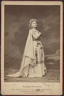 Marie Haupt (18 April 1849 – 1928) was a German operatic soprano who had an active career during the latter half of the 19th century. She is best remembered today for portraying several roles in the first complete presentation of Richard Wagner's The Ring Cycle at the very first Bayreuth Festival in 1876.[1]