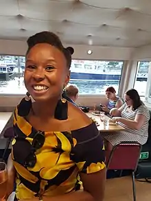 Others, such as her 2016 performance "Sally Hemings @ the Met" at the Metropolitan Museum, invite audience participation: Williamson led program participants on a tour of the American Wing of the museum as Sally Hemings, providing an alternate docent experience that highlighted the missing experiences of people not included in the museum's colonial narrative (including a visitor's worksheet modeled on the museum's educational products). Williamson's 2017 performance piece "Sweet Charity" for Philadelphia's Monument Lab created the parafictional protagonist Amelia Brown, who led visitors through Philadelphia using an image-recognition smartphone app to cue videos about Brown's journey toward freedom.[5][6][7] A scratch-off map, referencing both historical reenactments and walking tours, guided participants through Philadelphia.[8]